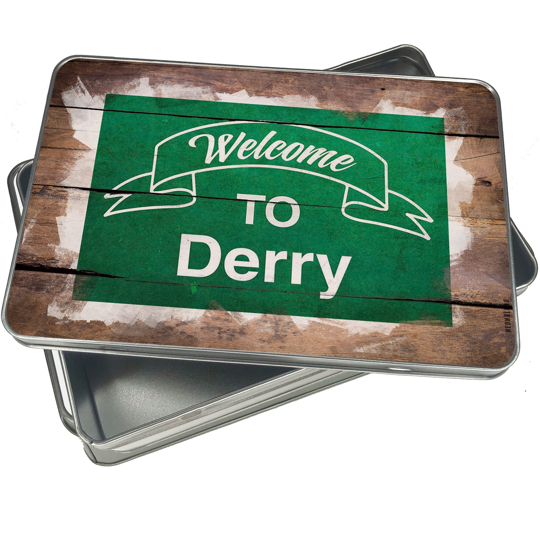 Christmas Cookie Tin Green Sign Welcome To Derry For Gift Giving Empty Candy Snack Pastry Treat Swap Box Cerebrate A Holiday Walmart Com